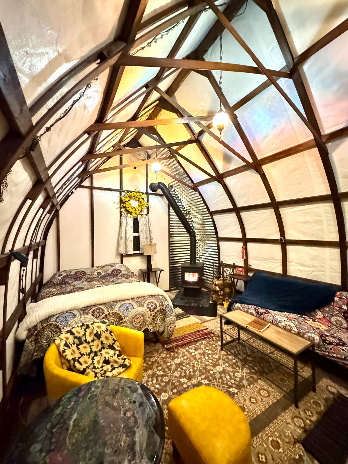 *Escape to your private couple’s retreat. *Whether sipping coffee at sunrise or star gazing, The Grain Binn is the perfect blend of rest and charm *Situated on 70 acres with flowing creek *Pickle Ball court 1 mile from Binn *Fully stocked kitchen *Fireplace *Hot tub with towels provided * Firepit with firewood *Bird feeder for Bird lovers *King size bed with quality bedding *Forgot something? Got cha *In floor heat *Snacks *Walking trails *Good WIFI *Unplug to reconnect
