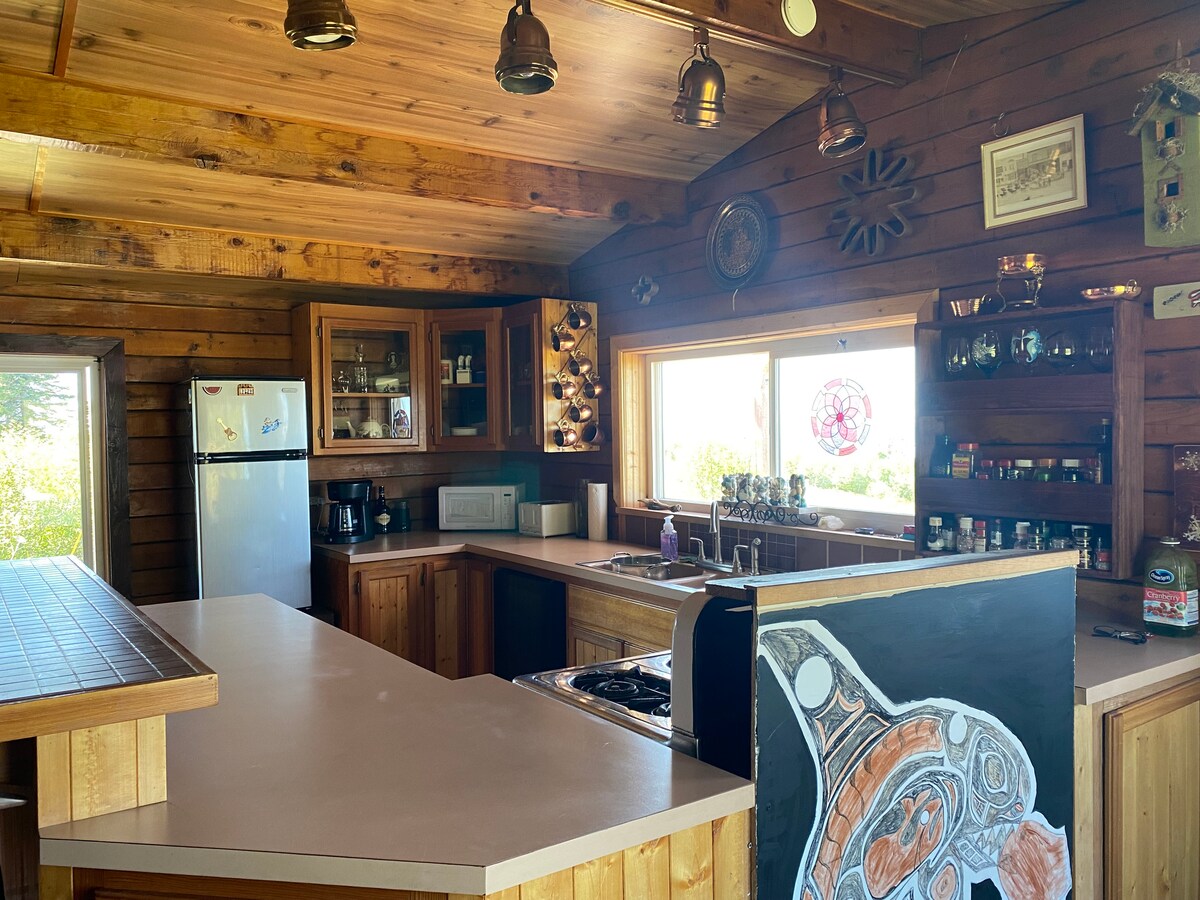 Casa lontano da casa! Million Dollar View! Magnificent Sunsets! Cucina completa con frigorifero, piano cottura, forno a microonde e lavastoviglie. Soggiorno completo di 2 divani e TV da 60 pollici con DirectTV. Internet wireless. Alaskan Wildlife Studio nelle vicinanze. Accesso alla spiaggia, supermercati, gas e ristoranti a circa 11 km a nord. Sono disponibili circa 3.000 metri quadrati per ospitare 6 persone e un divano letto.