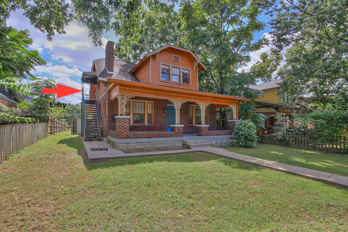 Quartiere di West Nashville Hillsboro/West End/Belmont. Licenza per gli affitti a breve termine n. 2093669 Le prenotazioni effettuate dopo le 21:00 per quella notte non saranno onorate. Il mio bungalow in stile Arts and Crafts è stato costruito nel 1928 da una famiglia con due figlie. La maggiore era sposata e quindi il piano superiore (la parte AirBNB della casa richiede di salire una rampa di scale) di