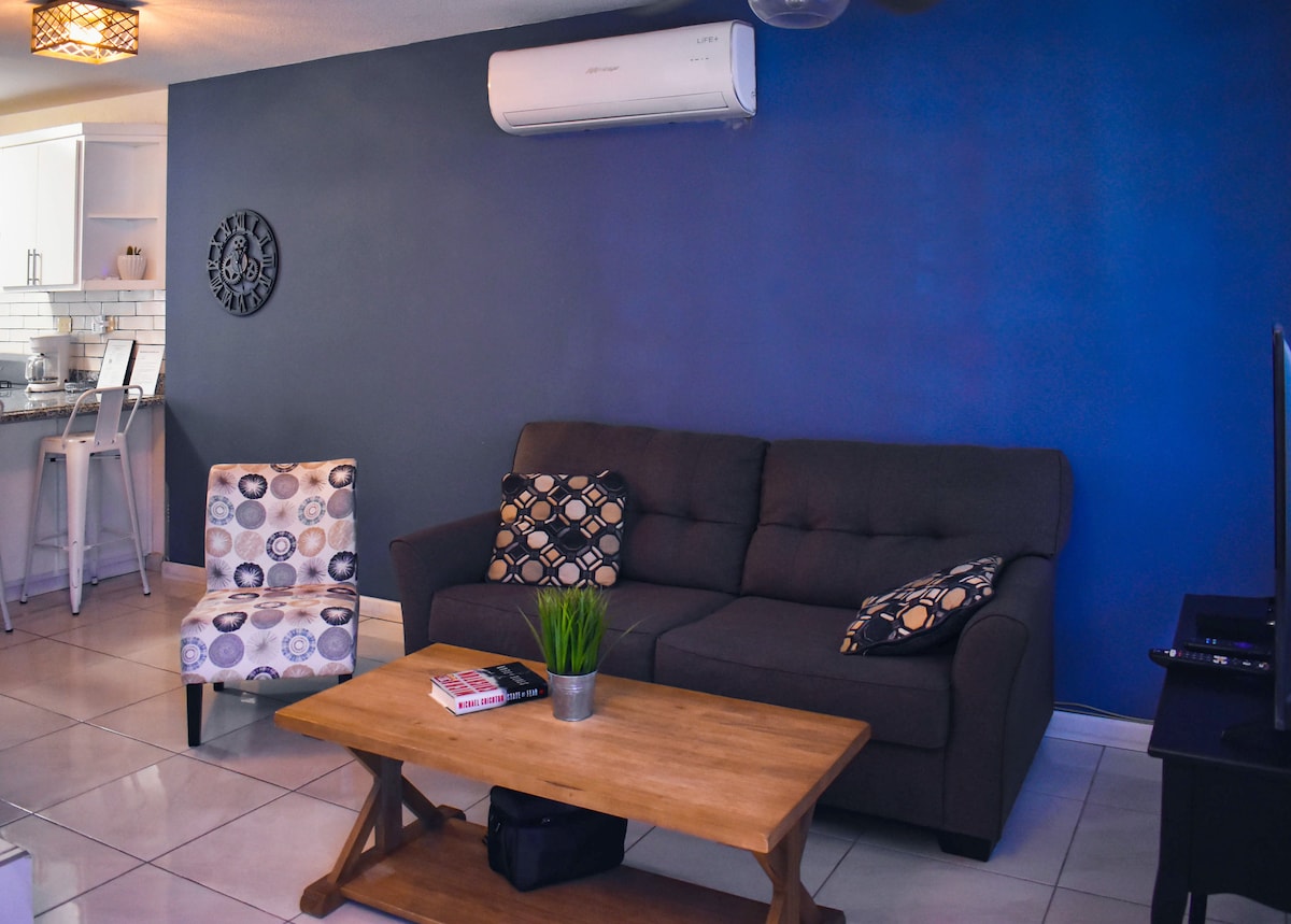 Confortevole ed elegante appartamento al piano terra in uno dei privati più sicuri di Nogales con una splendida vista. Situato a 4 minuti dal confine, a 9 minuti dal consolato degli Stati Uniti, Walmart, HomeDepot, Sams Club, a 3 minuti dal CAS e a un isolato da Plaza Diamond con caffè e ristoranti. Dispone di 2 camere da letto con scrivanie, ampio bagno, cucina, garage, aria condizionata che raffredda e riscalda, acqua filtrata, elettrodomestici e utensili comuni, Netflix, WiFi veloce e centro di lavaggio e asciugatura.