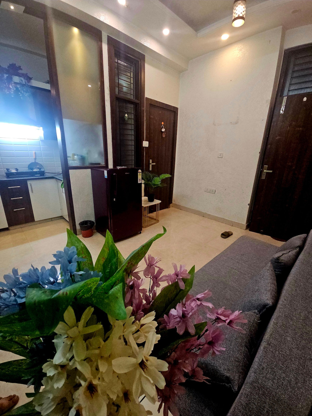 ✨ Ampia zona giorno: posti a sedere in peluche, illuminazione calda e una smart TV per un'atmosfera accogliente. ✨ Elegante angolo pranzo e lavoro: perfetto per i pasti o per una tranquilla pausa caffè. Interni ✨ moderni: arredi chic in legno, opere d'arte uniche e un'atmosfera rilassante. Posizione ✨ privilegiata – Vicino a Noida Sector 71: metropolitana, centri commerciali, caffetterie e centri commerciali. ✨ Completamente attrezzato: WiFi, aria condizionata e tutti i servizi essenziali per un soggiorno senza intoppi. ✨ Ideale per festeggiamenti e vacanze