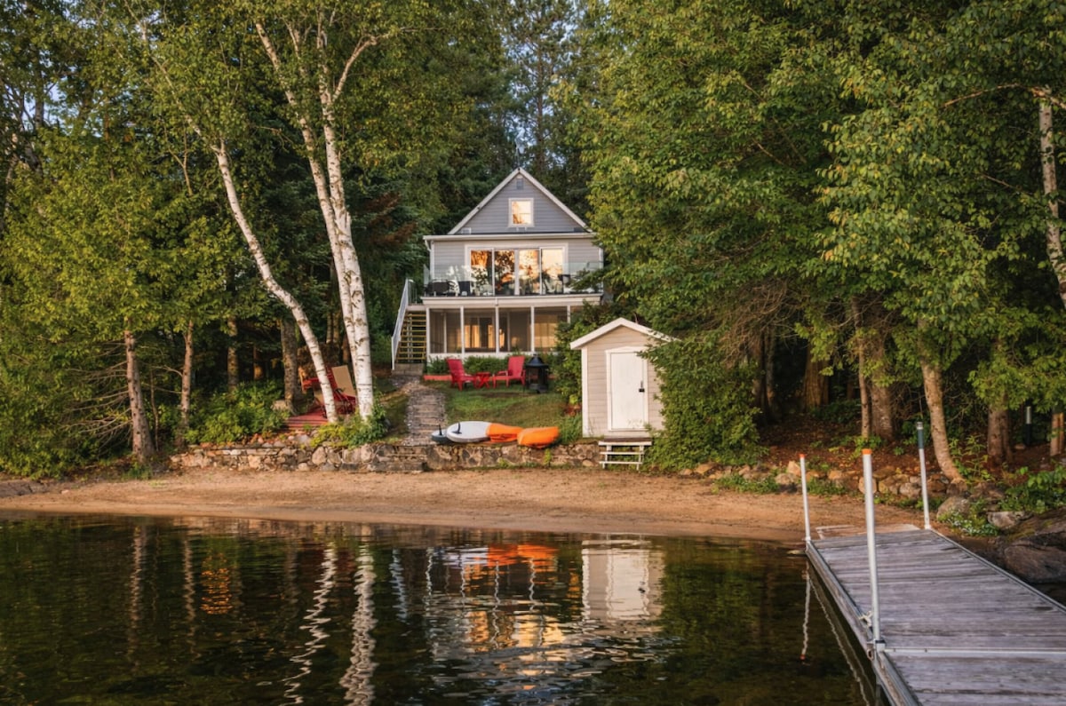 Charming and cozy lakefront on beautiful Lac Chapleau. Over 350ft of private shore. Spacious screened porch, large deck-private dock-sandy water access-fire pit and BBQ. 2 Bedrooms: 2 Queen-1 Double&Single. Indoors: Fully updated kitchen-4 piece bathroom with heated floors- cozy wood-burning fire place. WiFi+TV. Close to grocery-hiking-biking-skiing. Only 40 min to Tremblant Village. *Sauna not operational and firewood is not provided.