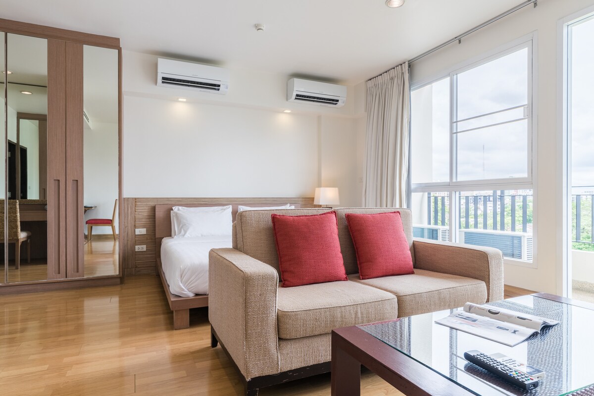 - Monolocale di 45 m² con cucina e balcone. - Vietato fumare / Vietata la cannabis - Un letto king-size - A 5 minuti a piedi dalla stazione BTS Sanampao (N4), uscita n. 3 - Bagno privato con doccia, asciugacapelli, articoli da toeletta e asciugamani - Aria condizionata/Wifi gratuito/TV - Cassetta di sicurezza - Zona giorno con divano - Deposito bagagli gratuito - Sicurezza 24 ore su 24 - Check-in e check-out facili - Parcheggio gratuito - Piscina e fitness *La tariffa indicata è per 2 ospiti, l'ospite aggiuntivo costa 500 THB a notte. Inserisci il numero di ospiti per verificare il prezzo