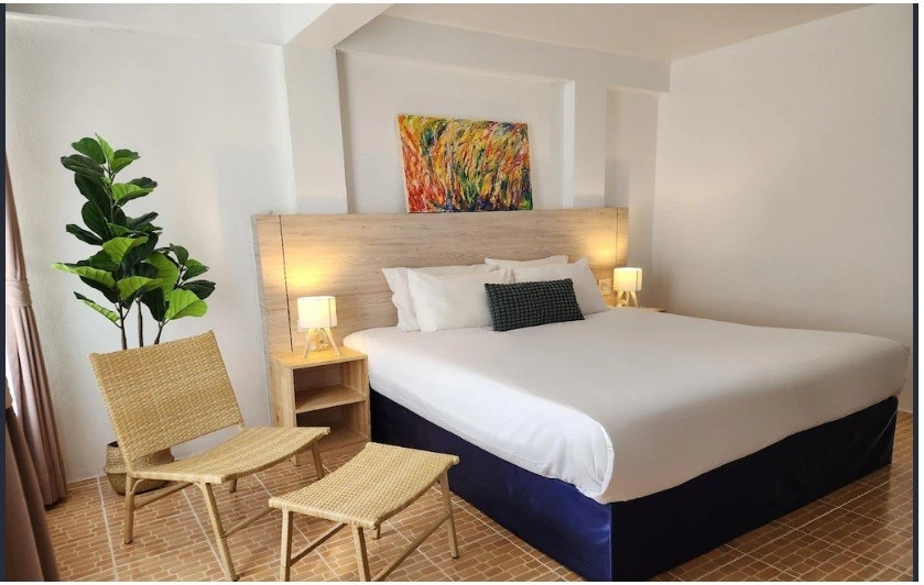 Scopri il fascino del nostro appartamento Krabi con una camera da letto e vista sul mare, situato in posizione ideale al terzo piano. Sali sul tuo ampio balcone privato per una vista spettacolare e completa sul mare di Klong Muang Beach. Rilassati sul grande divano all'aperto o goditi il tavolo da pranzo e le sedie all'aperto mentre sei immerso nella bellezza della costa. All'interno, troverai una cucina elegante e moderna per prepararti i pasti e un lussuoso bagno con vasca idromassaggio per rilassarti. Questo appartamento offre un soggiorno di lusso e un rifugio confortevole.