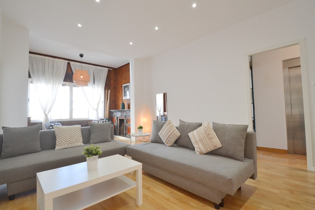 Spacious and comfortable, this apartment’s open floor plan covers over 60 sqm. Our completely renovated 19th century building has an unbeatable location in the heart of Old Town Palma, less than 15 minutes walking from the beach and the city’s main attractions, and 5 minutes from paid parking. Enjoy bustling tapas bars by day and tranquil streets at night. The apartment is on the 1st floor and the most accessible unit in the building; it’s fully equipped, including wifi and climate control.