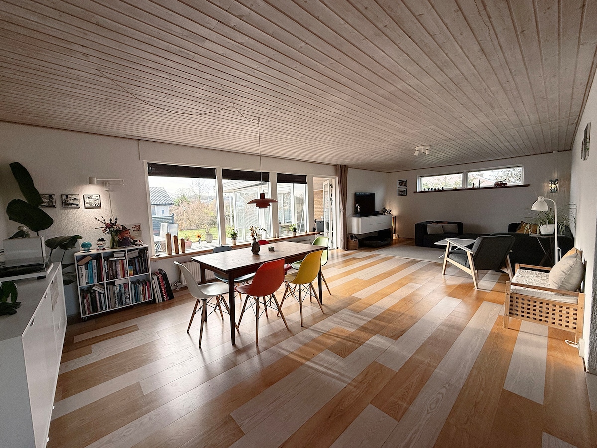 Rilassati in questa casa unica e spaziosa in un ambiente tranquillo con un giardino privato con terrazza, vista lago e direttamente vicino a Mørke Mose, con una natura incantevole e l'avifauna, accessibile tramite un percorso a piedi. La casa si trova in posizione centrale a Syddjurs, a soli 35 minuti dall'atmosfera della grande città di Aarhus con metropolitana leggera (10 minuti a piedi dalla metropolitana leggera dalla casa), 25 minuti per Ebeltoft, 20 minuti per Djurs Sommerland e 15 minuti per la splendida natura di Mols Bjerge.