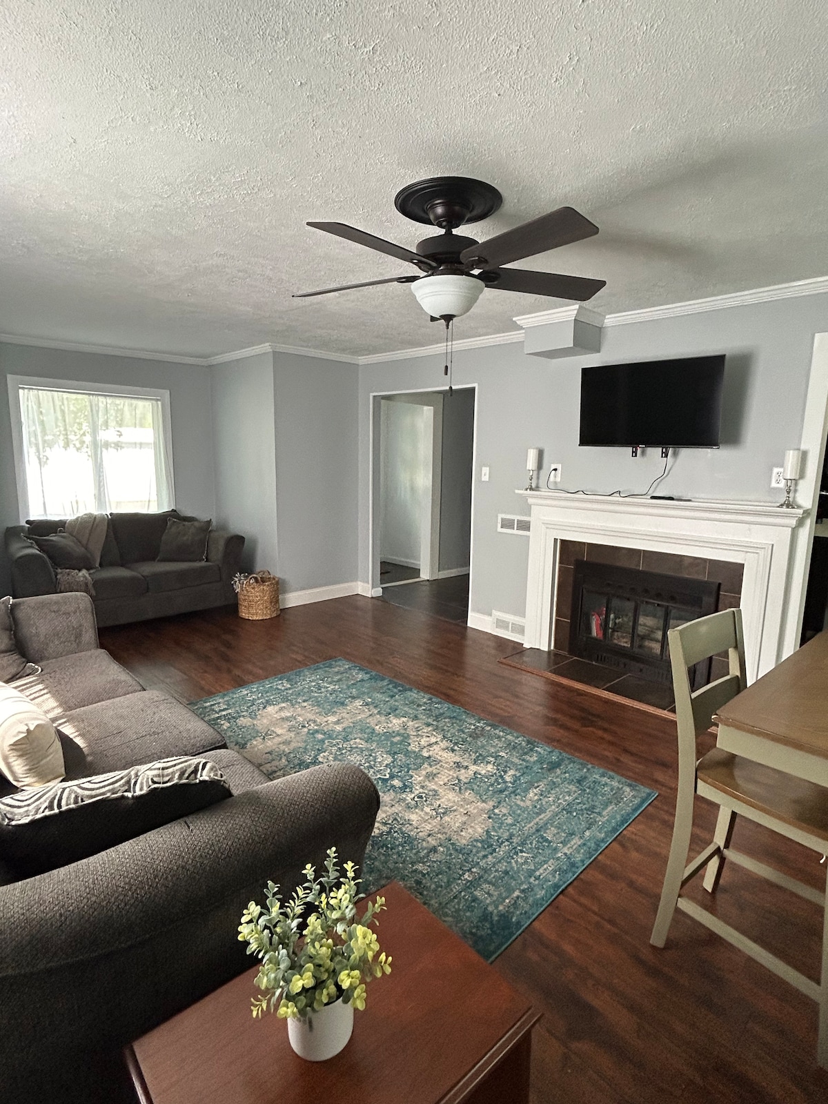 Incantevole casa in un quartiere per famiglie a nord di Normal. A 5 minuti dall'ISU, a 11 minuti da Rivian. Ristrutturazione recente e fresca. Adorabile portico anteriore con sedie a dondolo. Campo da basket nel cortile sul retro! Patio sul retro con pergola. Questa casa super spaziosa dispone di tre ampie camere da letto e tre bagni completi, oltre a due divani letto. Include due letti matrimoniali grandi! Perfetta per una famiglia o un dirigente in viaggio in cerca di una casa di lusso. Sono inclusi molti servizi!