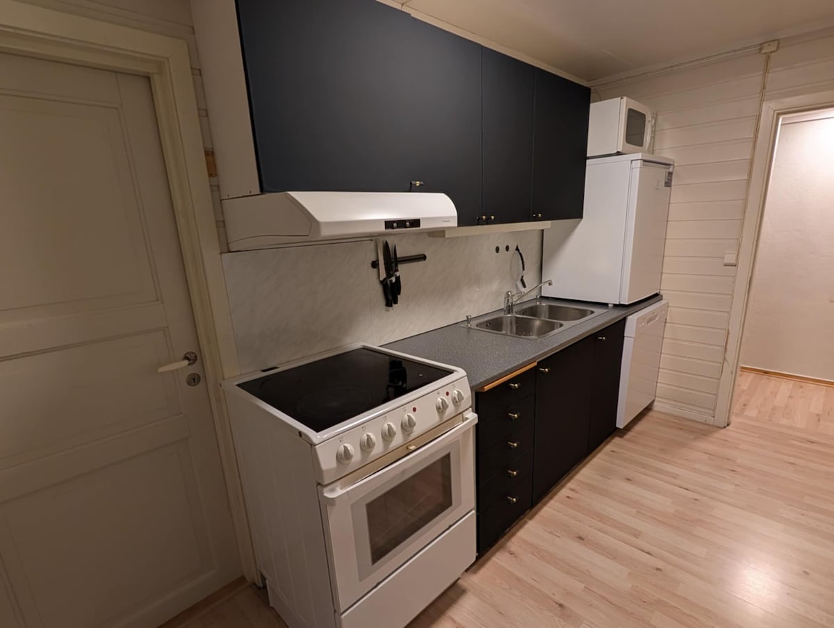 Accogliente appartamento nel cuore di Honningsvåg con letti e sauna. Cucina ben attrezzata con frigorifero, fornello, friggitrice ad aria, forno a microonde e lavastoviglie. La camera da letto dispone di un comodo letto matrimoniale di 160x200. Sul divano letto ci si trova sul proprio materasso 140x200. Lavanderia privata con lavatrice e asciugatrice. Il salotto dispone di TV con Chromecast, divano e sedie. WIFI GRATUITO e parcheggio. Possibilità di ricarica di veicoli elettrici previo accordo con il proprietario di casa.