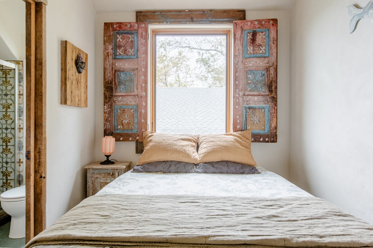 Un grazioso cottage di proprietà e progettato nel cuore di Asheville Est-Ovest. Raggiungibile a piedi da ristoranti/negozi, a 3 km dal centro e a 5 minuti da Biltmore Estate. DUE letti in totale. Il cottage ha un'atmosfera marocchina e include ceramiche, opere d'arte e tessuti fatti a mano. Le pareti sono in gesso di argilla e tutta la biancheria da letto è in cotone. Prodotti per la pulizia ecologici utilizzati. Prova anche la vasca all'aperto per il bagno caldo! Il parcheggio si trova in Bradley Street, di fronte al cottage o alla casa principale. Totalmente privato.