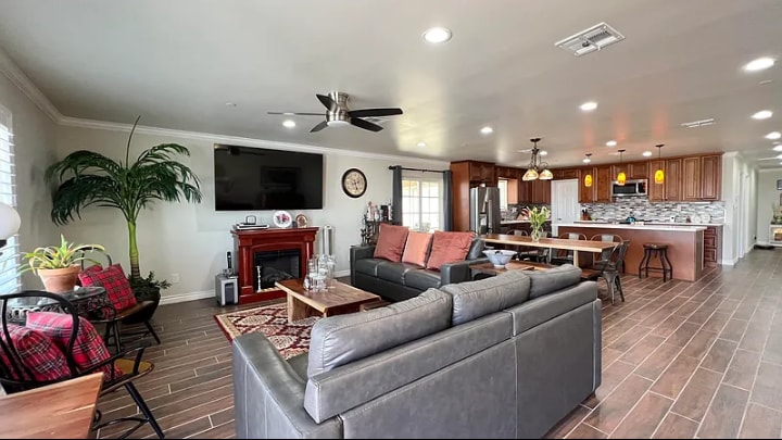 Dimentica ogni preoccupazione in questo ampio e sereno alloggio sulle montagne di Tehachapi. Situato su 2,5 ettari, con vista sulla valle e a soli 5 minuti dal centro di Tehachapi, questo è il luogo ideale per chi cerca comfort e praticità. Fuggi dal rumore e goditi il soggiorno in questa casa ristrutturata con 2 camere da letto e 2 bagni. Trascorri il tuo tempo nell'ampio salotto accanto a un accogliente caminetto, guarda il tuo film preferito, gioca a shuffleboard nella sala giardino o griglia sul retro nel patio.
