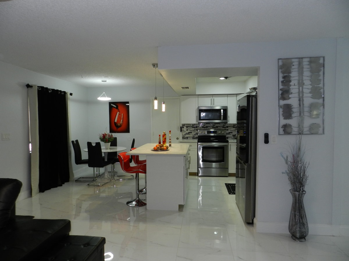Goditi una vacanza all'insegna dello stile in questo spazio in centro. Vicino a tutti i servizi, casa confortevole, luminosa e moderna! Recentemente ristrutturata, questa casa vanta un'ottima posizione a 25 minuti dall'aeroporto di Fort Lauderdale, una scelta eccellente per grandi gruppi di amici o famiglie. Il quartiere è tranquillo e sicuro. 3 camere da letto complete, soggiorno e zona pranzo, 2 bagni completi, cucina completa, patio, parcheggio, aria condizionata centralizzata, smart TV, Wi-Fi. Goditi questa casa lontano da casa! Saremo lieti di ospitarti.