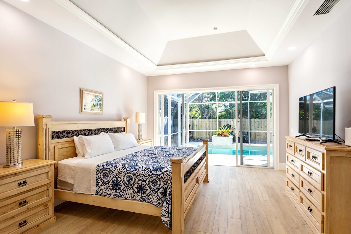 Welcome to our stylish and comfortable retreat, located just 1.3 miles from the sandy shores of Vanderbilt Beach and the scenic beauty of Wiggins Pass State Park. With the vibrant Mercato district nearby, you'll have access to an array of dining, shopping, and entertainment options. Our well-appointed accommodations include two bedrooms with king-sized beds, as well as a queen-sized sleeper sofa, making it perfect for families or groups of friends.