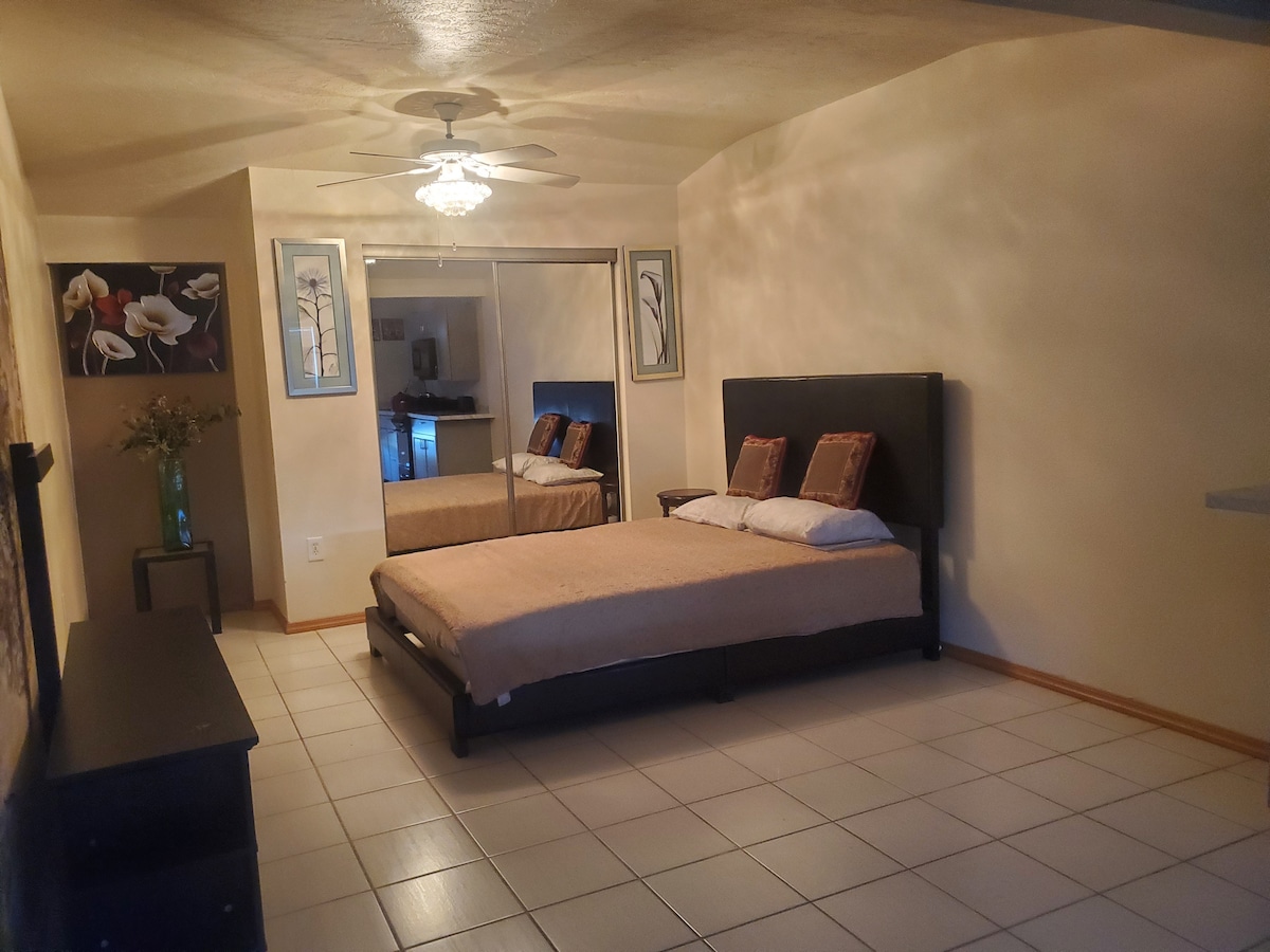Private studio with a separate entry, and parking. Large bedroom, with bathroom with shower, large walk in closet , compact kitchen, with convection stove, coffee maker, microwave, toaster, tea cattle, smaller fridge and a sink. Smart 42" tv with roku channels. Only thing that is shared is washer and dryer. Studio is are located right behind famous warm mineral springs, only 3 minutes walking distance. Quiet & safe location for your gateway.look us up Mineral Springs Vacation Rentals.