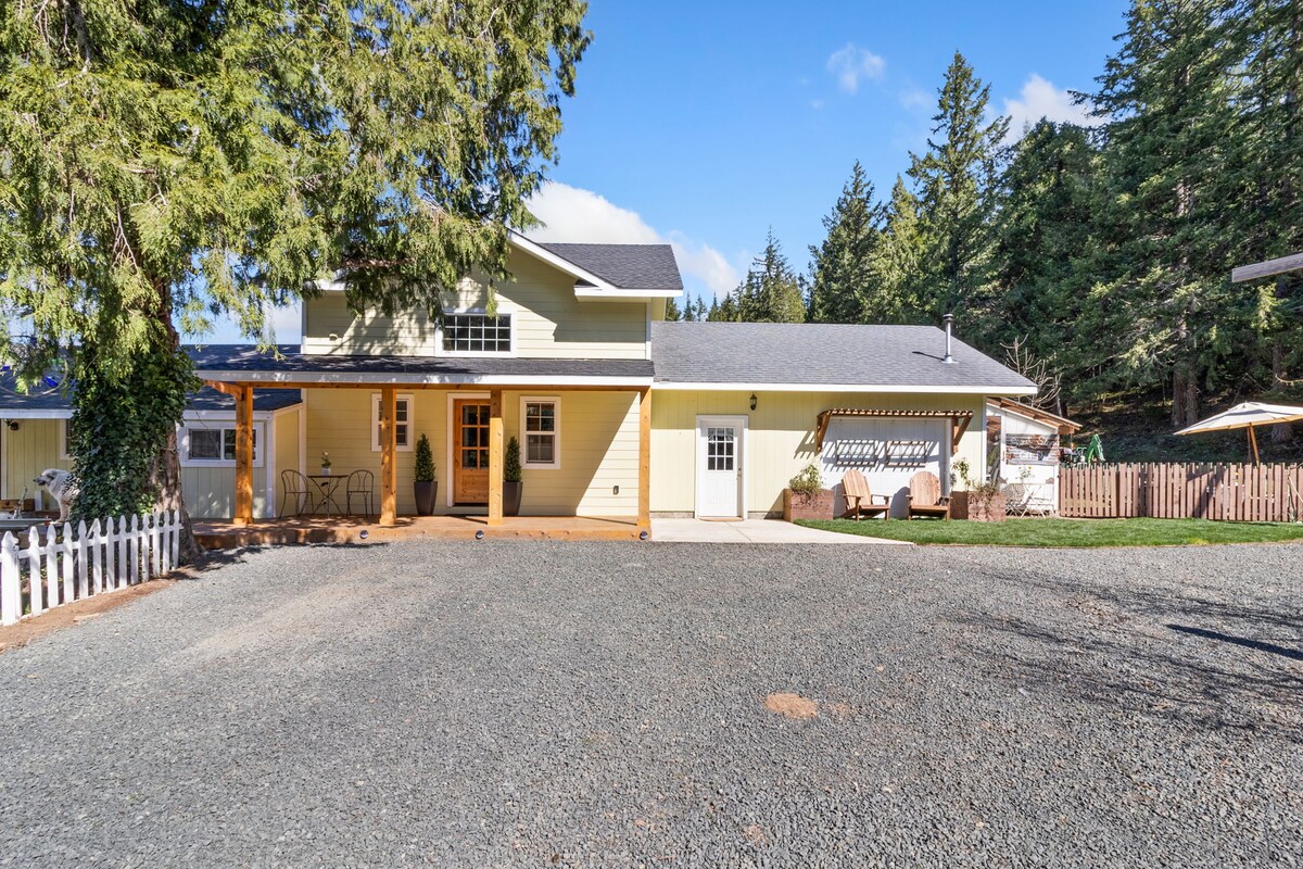 Minutes from several award-winning wineries and local fishing holes, the Umpqua Valley Garden Getaway has all the amenities you will need for a memorable vacation. Down a cobblestone stairway, you will find a pristinely redesigned cottage nestled in a private backyard garden. Start your day with a hot cup of coffee from the wicker chairs overlooking the backyard and end your day dining al fresco as string lights dangle above a cozy corner of the deck.
