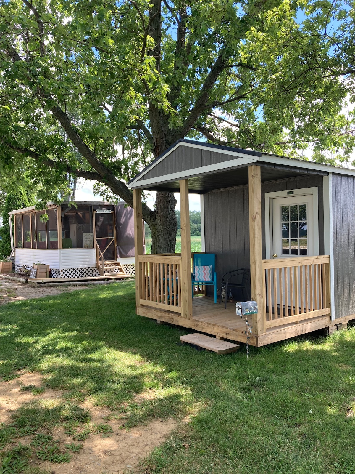 Ti diamo il benvenuto al Chakra Shack. Una pittoresca e semplice vacanza in campeggio fuori dall'autostrada 3 (a 15 minuti da Blenheim, Ontario) destinata a concederti un momento per riallinearti con la natura e staccare dal resto. Una piccola baita di 100 piedi quadrati e una dependance, situata su 4 acri di proprietà boschiva. Sei a pochi passi da una panoramica rialzata del lago erie. Il suono delle onde ti accompagna mentre ti immergi nel momento presente e crea un'esperienza di campeggio sana e affascinante.