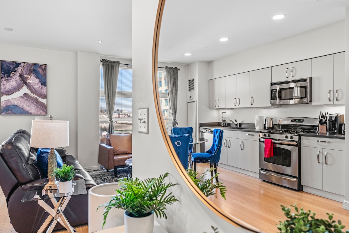 New modern 2bd condo: free parking/near train