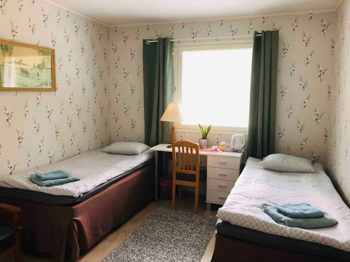 Monolocale con ingresso indipendente, cucina e bagno. A 10 minuti a piedi dalla stazione degli autobus, dai supermercati e da altri servizi. L'aeroporto di Ivalo dista solo 10 km. Ci sono due letti singoli. Scrivania e sedie Troverai anche un angolo cottura con frigorifero, piano cottura e forno a microonde, stoviglie e posate. Il monolocale dispone di un bagno privato con doccia. Asciugamani e carta igienica sono in dotazione. Free Wi-Fi.