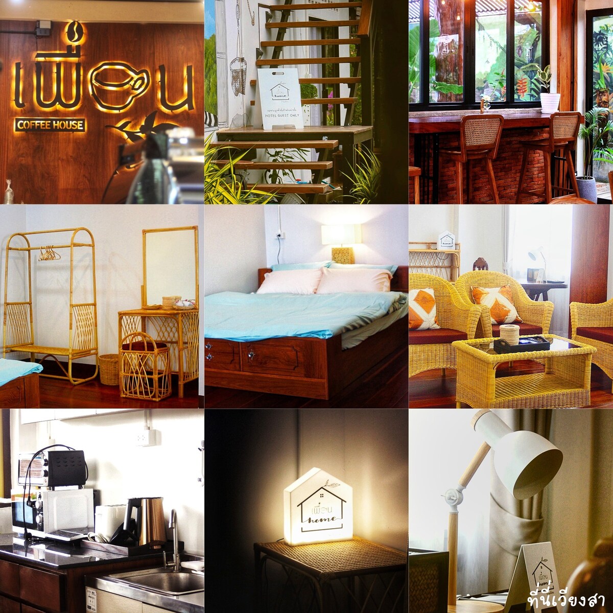 Our charming home is semi wooden with 3 A/C bedrooms and 3 bathrooms. It is equipped with a kitchen, a bar, fiber optic wifi and a large open space upstairs. It is perfect for a family with children or a group of friends. We are 10 minutes walking distance from Chiangmai Gate and the Saturday walking street. We offer complimentary home cooked breakfast every morning and a complimentary pick up service from the airport.