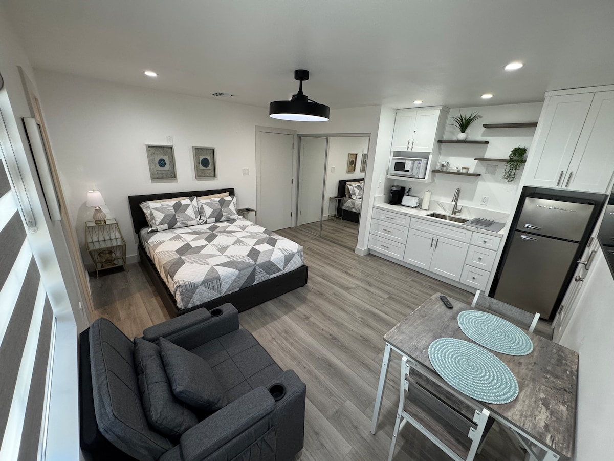 Ti diamo il benvenuto nella nostra pensione privata recentemente ristrutturata! L'intero spazio è a tua disposizione, non condividi nulla con nessuno. Confortevole spazio di 300 piedi quadrati super pulito con il parcheggio e la posizione più comodi di sempre. Siamo al centro di tutto, sia che tu stia visitando Los Angeles o Orange County, a meno di un minuto dall'autostrada. La privacy non potrebbe essere migliore, grazie al cancello d'ingresso privato, alle porte interne e al piccolo patio esterno. Prenota in tutta tranquillità. 😊