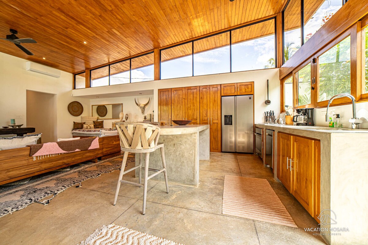 Una terra spaziosa incastonata tra alberi da frutto, Ceibos e Guanacastes, la nostra dimora artistica ti invita a rilassarti in un'atmosfera tranquilla. Decorata con tocchi artigianali, questo santuario unisce eleganza rustica e comfort moderni. Con una camera da letto principale e una camera per bambini, questa casa è ideale per una famiglia con bambini piccoli in quanto è a pochi passi dal Wild Child Play Garden, a 10 minuti in auto dalla spiaggia di Guiones, a 7 minuti da Pelada e a 10 minuti da Ostional, un santuario per l'allevamento di tartarughe marine di fama mondiale.