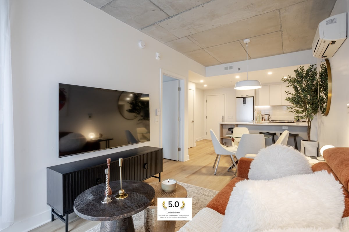 Goditi il tuo soggiorno nel cuore della città! Nuovissimo TDC 2 di lusso in centro con accesso diretto al Bell Center! Goditi il comfort del nostro appartamento con una camera da letto, completamente arredato e attrezzato, con balcone privato! Il tuo soggiorno include l'accesso a sauna, piscina, palestra, skylounge, sala giochi, lounge e terrazza con più barbecue. Parcheggio sotterraneo gratuito, con la metropolitana a pochi minuti di distanza. Senza uscire, la città è tutta da esplorare. Inoltre, rilassati con Netflix gratuito per un soggiorno perfetto