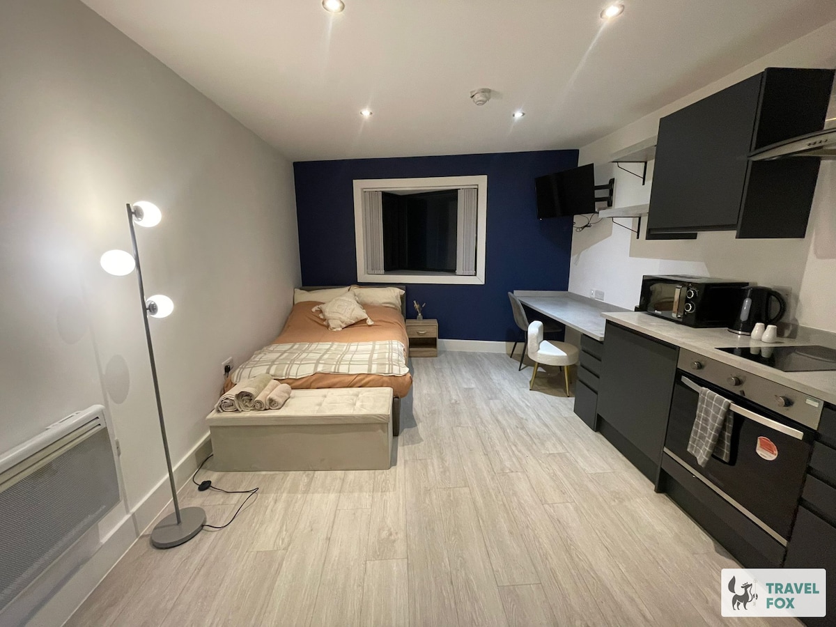 Scopri un appartamento raffinato e progettato con gusto, situato in posizione ideale nel cuore della città. A meno di 10 minuti a piedi dalla stazione ferroviaria e dal centro città. A 2 minuti a piedi dall'ospedale Florence Nightingale e a 10 minuti di auto dalla Rolls Royce. Questo rifugio di classe vanta arredi eleganti e servizi moderni, offrendo un rifugio di lusso per il tuo soggiorno. Grazie alla sua posizione centrale, potrai accedere facilmente alle vivaci attrazioni della città, rendendolo la base perfetta sia per chi viaggia per lavoro che per chi viaggia per svago.