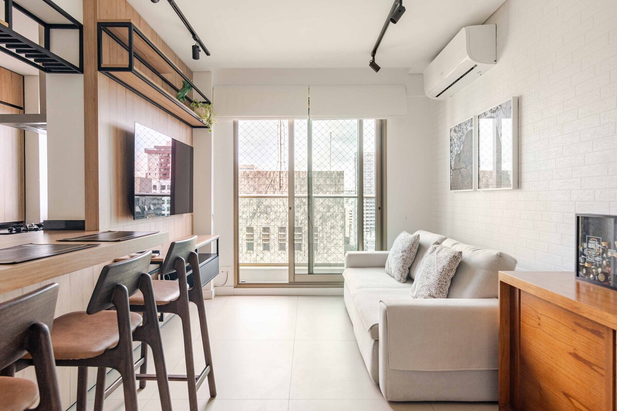 Appartamento nuovo e ristrutturato con balcone, piano alto, lussuosamente arredato, cucina completamente attrezzata, aria condizionata e smartTV in tutti gli ambienti, lavatrice, posizione migliore, a due isolati da Piazza Savassi, la regione più popolare di Belo Horizonte, e a pochi passi da Praça da Liberdade (parco e numerosi musei). I servizi includono garage gratuito (auto di grandi dimensioni), Wi-Fi a 700 mbps, concierge 24 ore su 24, pulizie, sauna, centro fitness, co-working, lavanderia Omo, deposito bagagli, tra gli altri.