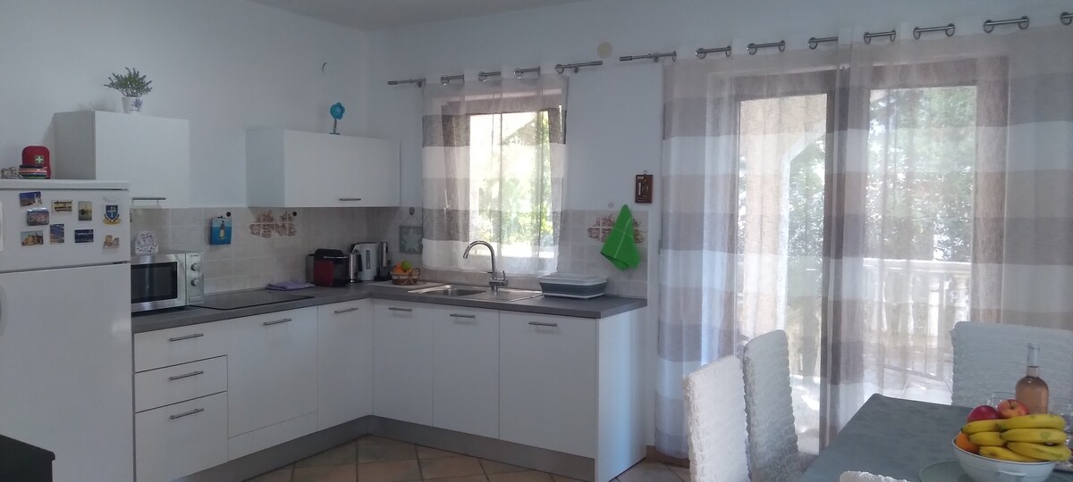 Bellissimo appartamento di 34 m² con 1 camera da letto e 1 soggiorno al piano terra con cortile verde di 35 m² in un ambiente tranquillo. Ingresso all'appartamento dal giardino. Vista mare. Cucina con tutti gli elettrodomestici. Bagno con doccia. Wi-Fi. TV LCD. Piscina aperta dal 1° giugno al 1° ottobre. Vista spettacolare. Spiaggia di sabbia a 30 m dall'appartamento. Accesso tramite scale private. Acqua di mare pulita e natura e spiagge bellissime. Solo per famiglie con bambini piccoli e coppie sposate. Parcheggio ombreggiato. Due condizionatori + ventilatore + tenda. Due biciclette.