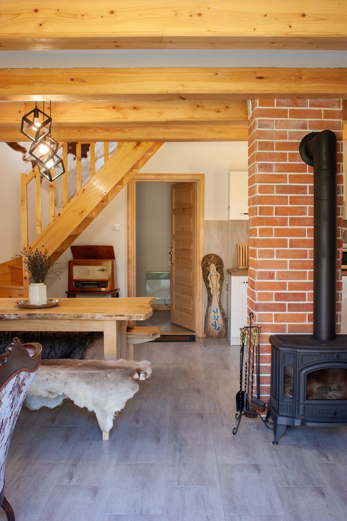 Alinówka in affitto nell'Isola Beskids è un incantevole e accogliente cottage in legno, perfetto per famiglie o un gruppo di amici in cerca di una vacanza tranquilla nel cuore della natura. Il cottage si trova su una collina, circondato da campi e alberi. Terreno di 30 are, recintato, con zona barbecue e campeggio vicino al fuoco. Terrazza con vista sulle vicine montagne, dove potrai gustare il caffè del mattino o immergerti in una vasca idromassaggio la sera con il paesaggio dei Beschidi.