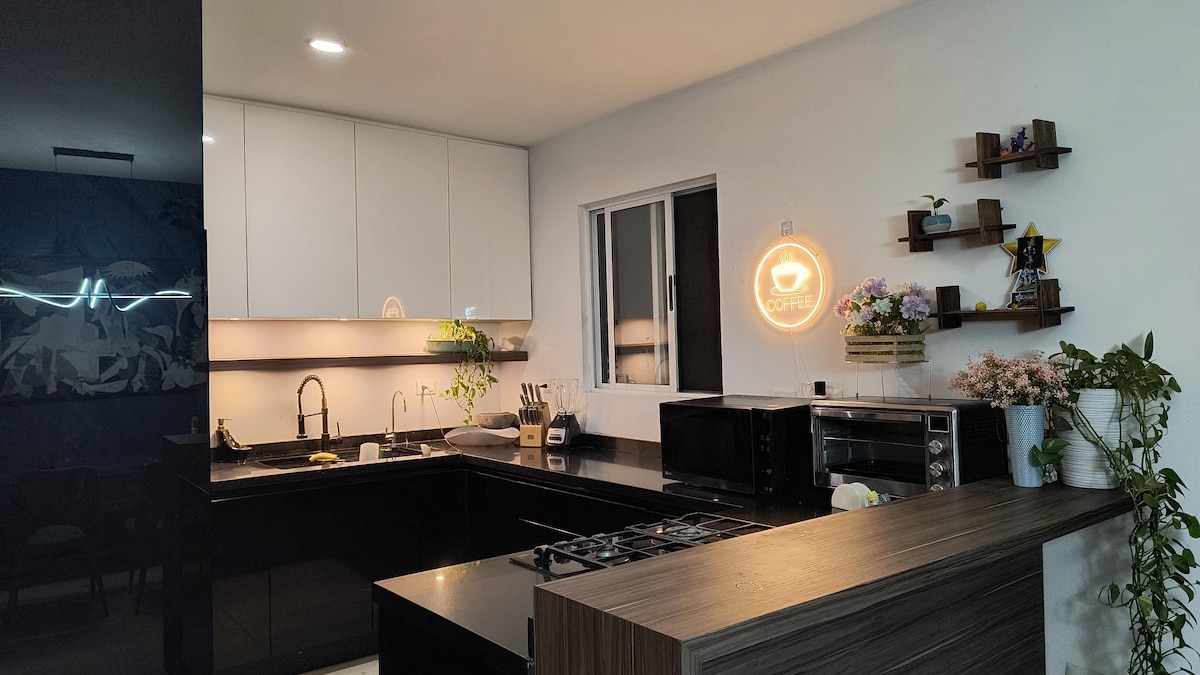 Dispone di: Wi-Fi 2 camere da letto Queen Size con aria condizionata. 2 divani letto singoli nel soggiorno con aria condizionata. Soggiorno con Smart TV 32” (Netflix incluso) Soggiorno con poltrone pouf. Cucina integrale con piano cottura, padella, forno a microonde e frigobar per i tuoi alimenti. Tavolo con piatti, bicchieri e utensili. Bagno e doccia (acqua calda). Lavatrice per lavare i vestiti sporchi. Telecamera di sicurezza. Kit di benvenuto: Caffè, 4 bibite, 2 acque e 2 birre