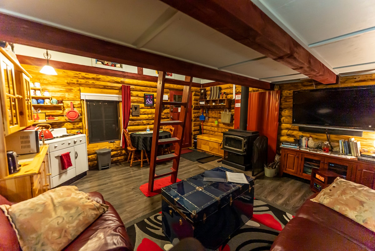 Chalet rustico situato sulle Wildcat Hills, 20 minuti a ovest e a nord di Cochrane. A 15 minuti dall'area ricreativa di Ghost Lake, a 55 minuti da Canmore e a 70 minuti da Banff. Zona boschiva con pace e tranquillità. Soggiorna in un ambiente simile a un campeggio, con una fantastica area braciere. Di solito siamo in giro e ci piace incontrare nuove persone, ma possiamo darti il 100% di privacy. Confortevole, 30 metri quadrati con soppalco