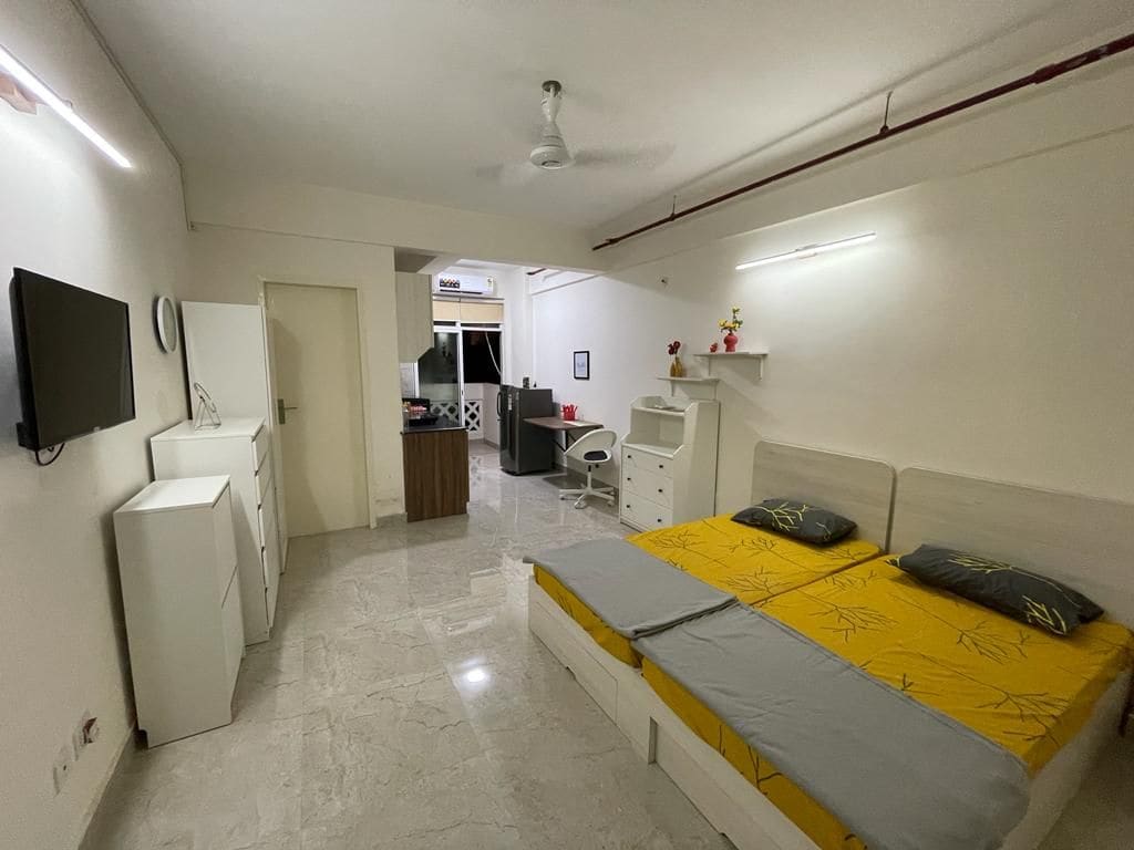 Il compatto e accogliente monolocale a tema indiano è ideale per soggiorni mensili o più lunghi. - A misura di coppia 🎥 Un proiettore per un'esperienza visiva in stile cinema. Un divano letto per migliorare la tua esperienza visiva in soggiorno con aria condizionata 🌆 Situato al 10° piano di un grattacielo recintato e sicuro vicino al cavalcavia di Maduravoyal. 🌇 Un balcone esposto a ovest con splendide viste sul tramonto (perfetto per il caffè serale!) Allestimento adatto ad🐾 animali domestici e famiglie