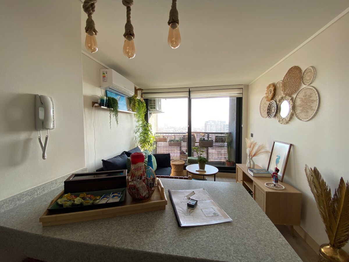 Elegante appartamento in stile nordico nel cuore di Ñuñoa, perfetto per rilassarsi dopo aver esplorato Santiago. Situato in un quartiere sicuro, tranquillo e ben collegato, a pochi passi da Plaza Ñuñoa, dalla metropolitana, da ristoranti, bar e negozi. Vicino al centro commerciale e allo Stadio Nazionale. Dotato di aria condizionata, lavasciuga, cucina completamente attrezzata, Wi-Fi veloce e area di lavoro dedicata. Serratura elettronica per un facile self check-in, sicurezza 24 ore su 24, 7 giorni su 7, e parcheggio privato. Servizi dell'edificio: palestra, piscina e lavanderia.
