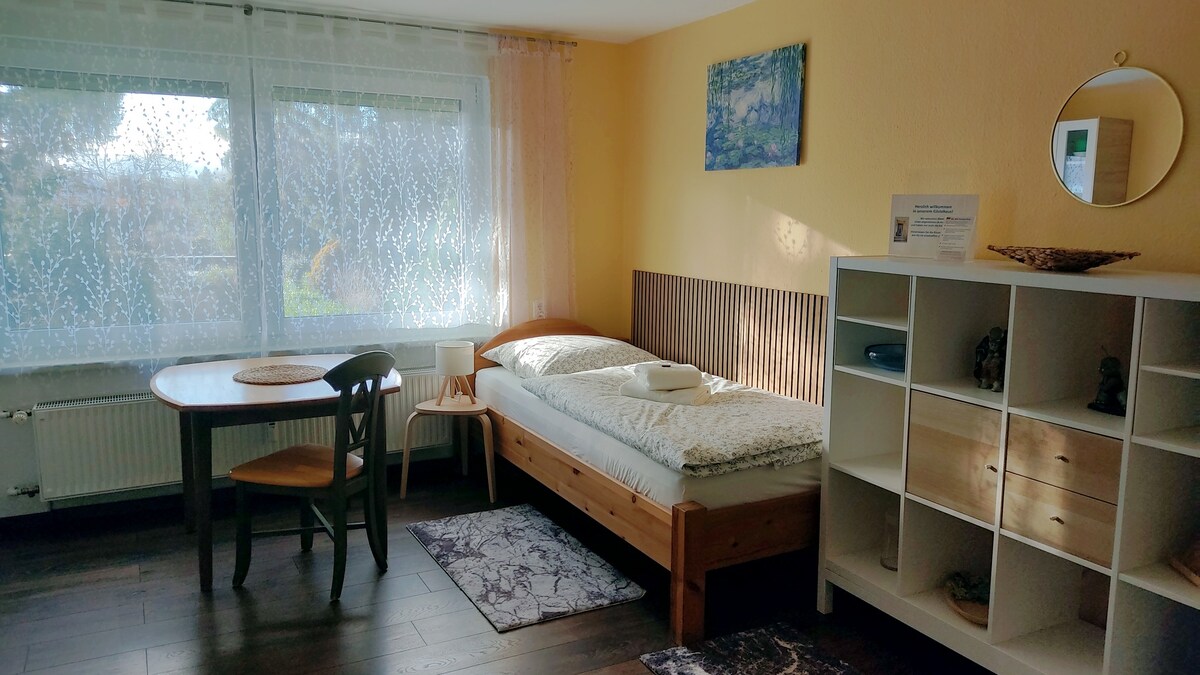 The lovingly furnished, newly designed and very well-equipped apartment is located in a building, that is separated from the main house. You live in a very quiet location on the southern outskirt of Nuremberg. By public transport (bus / subway) you can get to the main railway station in 25 minutes without any stress. The bus stop is only a few minutes walk away. The easiest way to reach the Nuremberg exhibition center is by car in only 20 minutes.