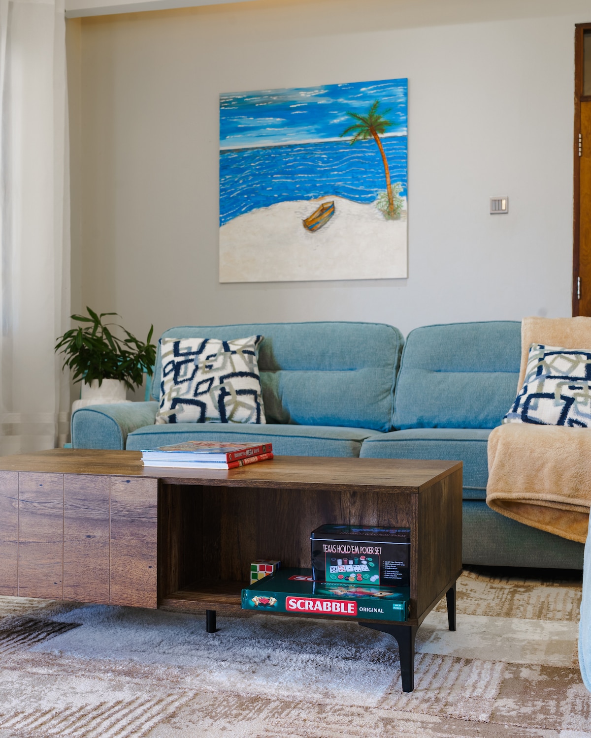 A cozy serviced studio apartment (Bamburi) furnished *Suitable for 2 adults and 1 child or 3 adults, furnished with a queen size bed and a single bed *Daily cleaning included *Dining table with four chairs, sofa, coffee table *AC *TV *Lock up safe *Balcony-two chairs, coffee table *Kitchen - fridge, microwave, kettle, coffee maker, toaster, crockery, cutlery *Access to amenities - pool, kids play area, beach bar, restaurant, gym, beach, laundry *21 km from Moi Int airport *26km from SGR Mombasa