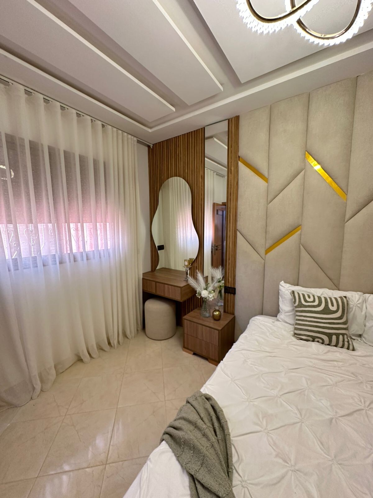 Appartamento chic e accogliente a pochi minuti dalla storica Medina di Fes Design moderno con dettagli caldi per un'atmosfera rilassante Ampio soggiorno per rilassarsi dopo aver esplorato la città Cucina attrezzata per pasti casalinghi Camera da letto confortevole e bagno pulito e funzionale WiFi, aria condizionata e lavatrice per la tua comodità Perfetto per coppie sposate, famiglie o amici in visita a Fes