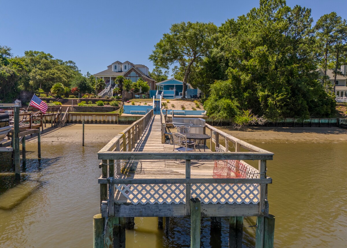 Relax peacefully and have fun with the whole family. With the ICW in your back yard you can sit, fish on the longest pier on the island, work(if you must) with availability to charge devices or just relax and have a beverage watching the sun set. Just minutes from the beach, walk or take the golf cart for a day of fun in the sun. After a long day grab some takeout or cook in the fully furnished kitchen and dine on one of the tables outside or inside and watch the boats go by on the waterway.