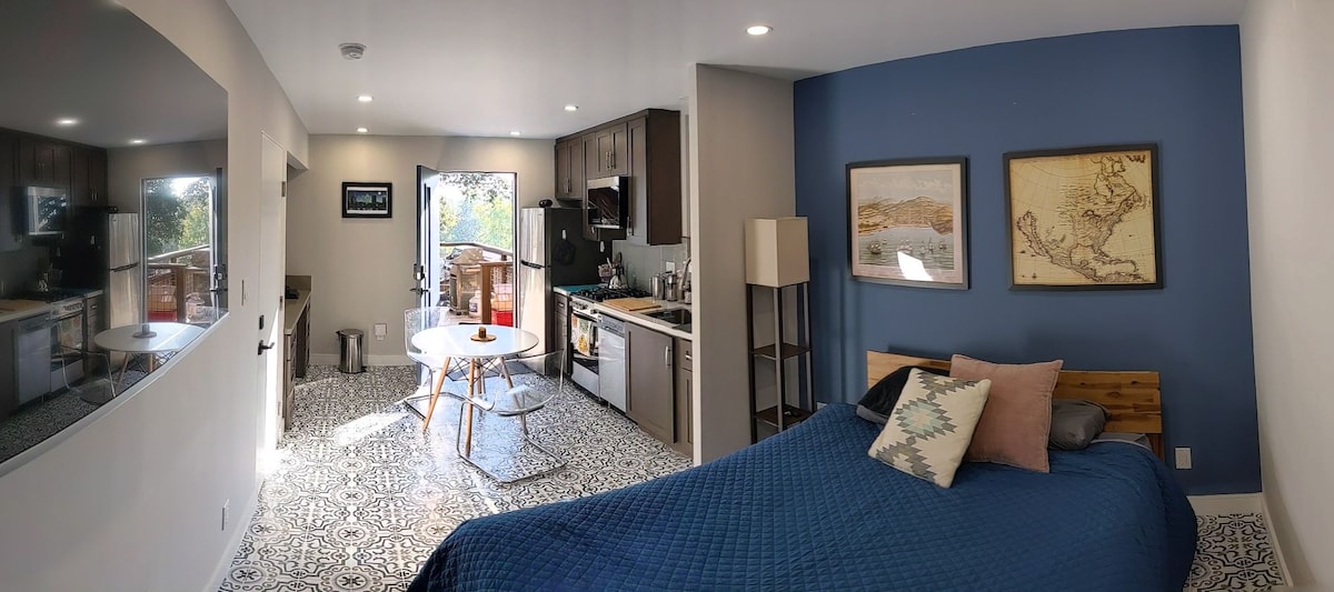 Tieni l'intera Bay Area a portata di mano... e proprio fuori dalla finestra! Questo monolocale privato nascosto tra le colline pedemontane di Oakland è la base perfetta per le avventure. A 9 minuti di auto puoi raggiungere San Francisco in treno. Colosseo e sequoie sono a pochi minuti di distanza, così come molte altre attrazioni*. Sarai accolto a casa con un comodo letto Cal King e una serena vista sul giardino. Goditi un caffè o un tè mentre ti sistemi al tavolo, e il nostro wifi ad alta velocità è quello che fa per te. Hai un veicolo elettrico? Ricarica di livello 2 durante la notte (J1772)!