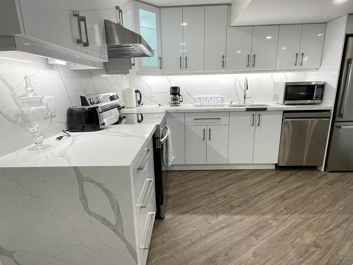 Ti diamo il benvenuto nel tuo rifugio perfetto: un'oasi per 1-2 ospiti in cerca del massimo comfort. Goditi una connettività senza intoppi con WiFi, Netflix e un lussuoso letto queen-size. Scopri l'essenza della casa nel nostro accogliente e moderno monolocale seminterrato. Con un angolo cottura completo, una lavanderia interna e un sacco di spazio. Questa unità moderna è situata in un quartiere sereno e sicuro a Oakville, a pochi passi dai mezzi pubblici, vicino a vari servizi come ristoranti, centri commerciali e sentieri.
