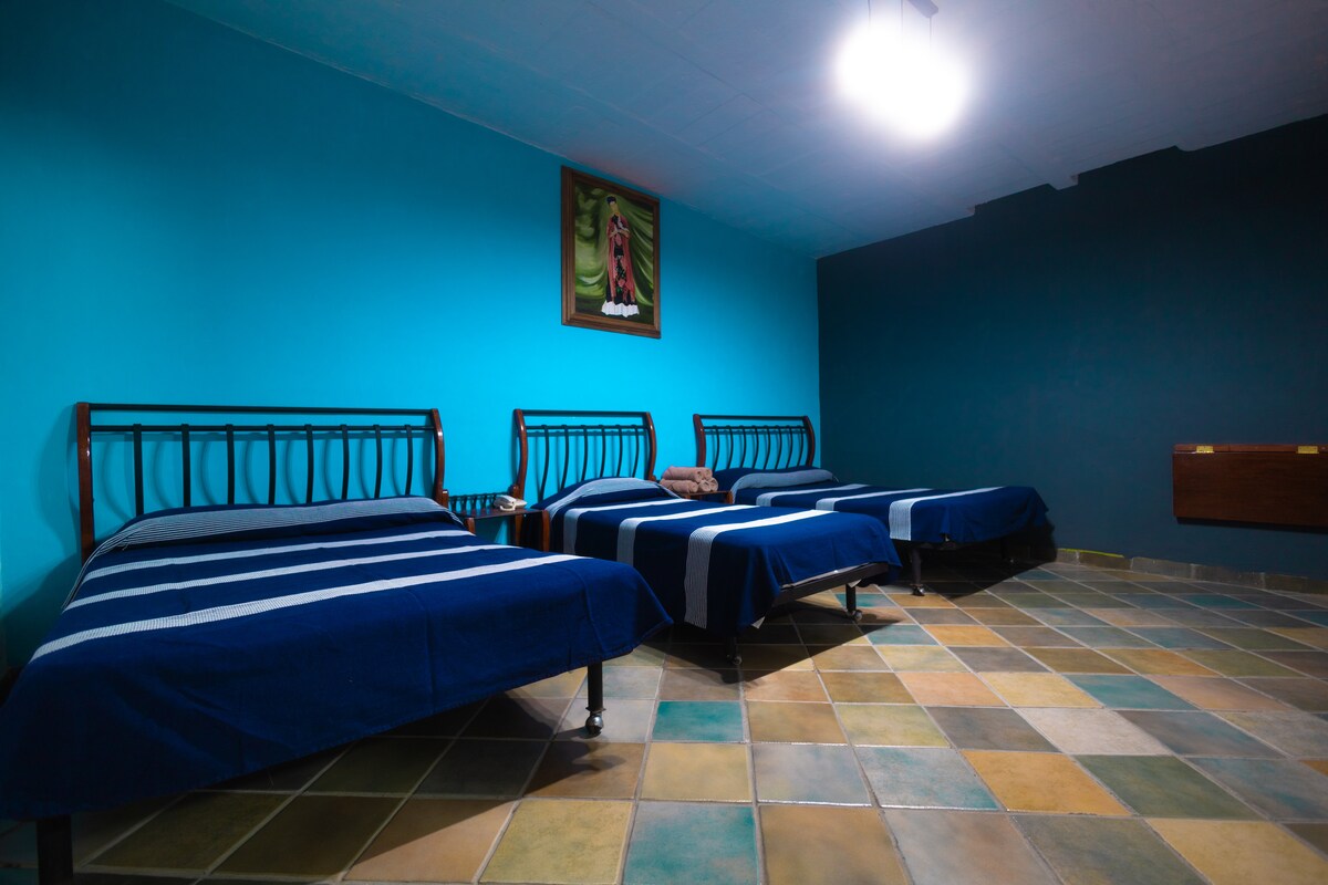Una Posada Mas has an excellent location on Calle Rinconcito, steps from the road to Punta Cometa, bakery, juices, restaurants and just 2 minutes from the sea. The tropical plant garden lowers the temperature inside the posada, ideal for cooling off and relaxing after a day at the beach. Room 7 has 3 double beds, one on a semi-floor, private bathroom, large mosquito nets and fans. There is a living room with large windows to let the green of the garden enter the room.