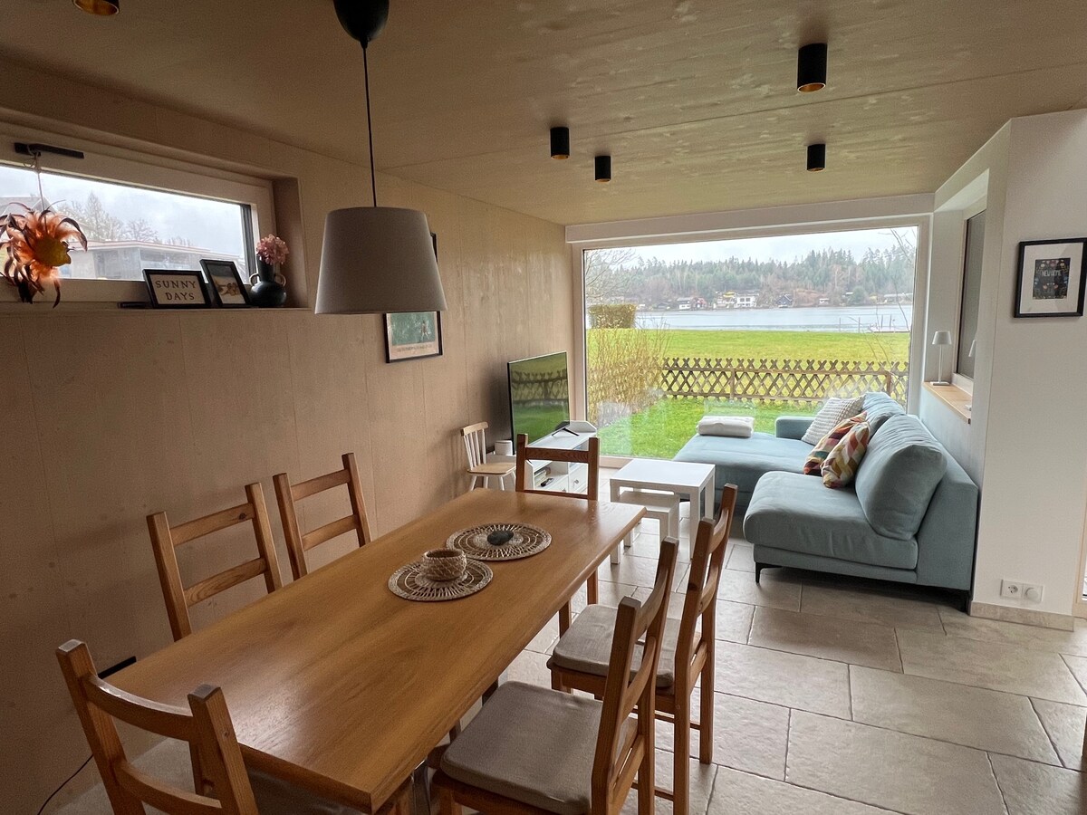 Dieses kleine Häuschen ist der ideale Urlaubsort für Paare, Freunde oder Familien, die eine Auszeit inmitten der Natur suchen. Das Haus bietet Platz für 4 Personen in 2 Schlafzimmern und verfügt über einen direkten Seezugang. Ideal für Naturliebhaber, die Entspannung im oder am Wasser (mit eigenem Tretboot) suchen. Voll ausgestattet mit moderner Küche, gemütlichem Wohnzimmer, Feuerschale, Esstisch und Lounge im Freien - lässt es keine Wünsche offen.