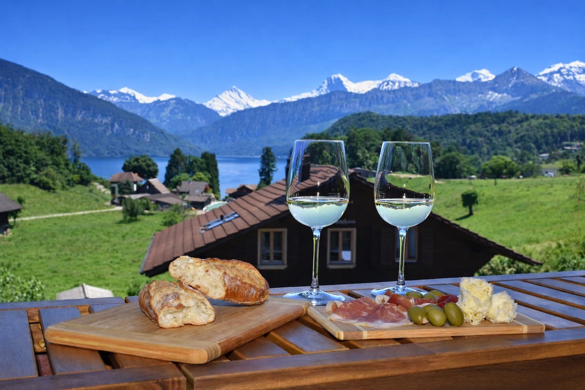 🛌 Letto king-size di lusso 💻 Wi-Fi veloce e spazio di lavoro 🌄 Vista mozzafiato sulle montagne e sul lago + terrazza privata 🎨 Interni accoglienti e progettati con cura 🍳 Cucina attrezzata Parcheggio 🚗 riservato. 📺 Smart TV e intrattenimento 🧳 Deposito bagagli gratuito ⏲️ Superhost con risposte rapide e cordiali 🚗 Facile accesso a Brienz, Interlaken, Thun, Lauterbrunnen, castelli, escursioni e lago! ❗️Leggi la descrizione completa per avere aspettative realistiche.