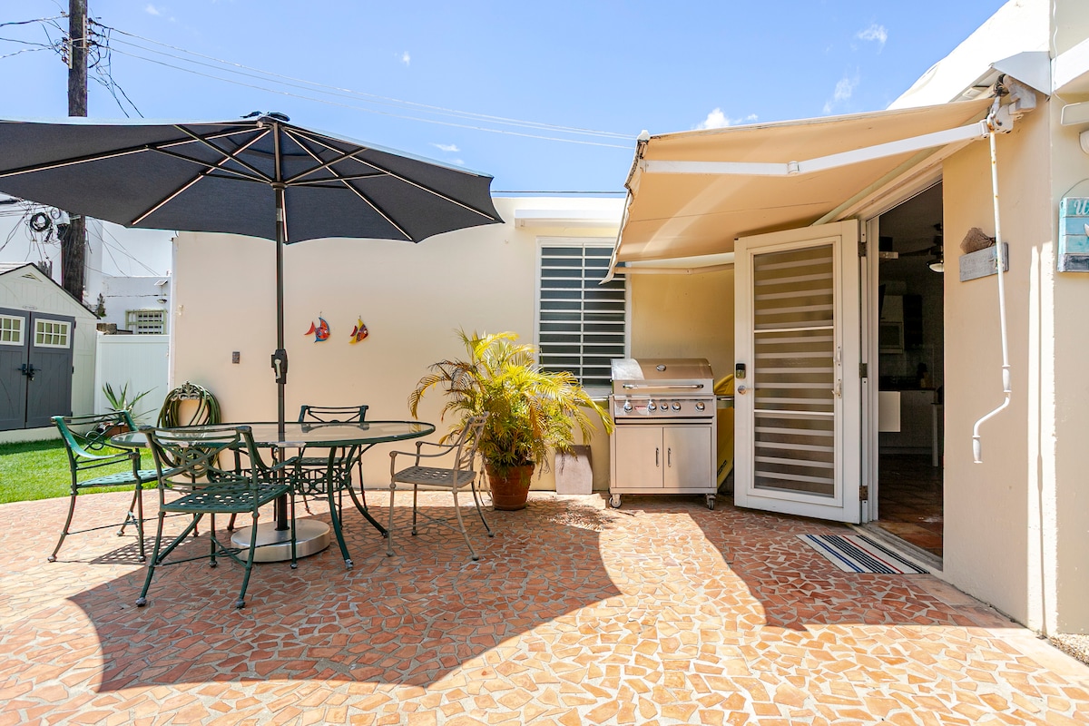 Siamo situati a pochi passi dalla splendida Ocean Park Beach. Questo appartamento di 1 camera da letto/1 bagno al 2 ° piano è immerso tra fiori tropicali, orchidee e fogliame. Dispone di una cucina attrezzata, biancheria da letto e un futon nella zona giorno, oltre a un nuovo bagno e aria condizionata. Il giardino è splendido! Coquis ti ha serenato la sera e la fontana e i rintocchi del vento sono divini. Ci sono boogie board, un kayak e persino un paddleball. Incredibili ristoranti e una varietà di bar si trovano a un solo isolato di distanza in Calle Loiza.