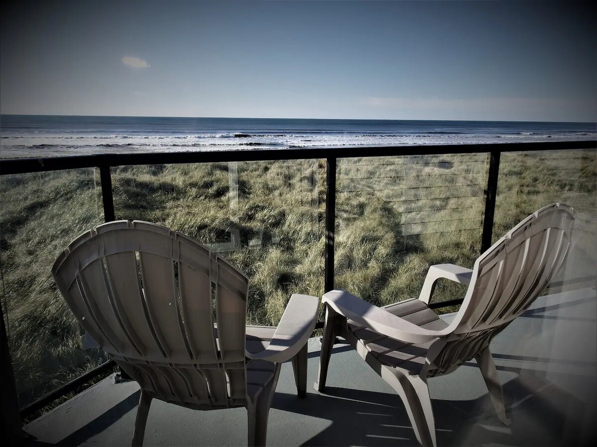 Do you like the sound of the ocean? Come and experience this amazing ocean front 2-story Condo on the corner overlooking the Pacific Ocean in Ocean Shores, WA, Quite location. Just open doors and hear the ocean from the upper or lower decks. Upstairs large bedroom, queen size bed with jacuzzi over looking the ocean. full size bath. Downstairs full kitchen, living room looking out to beach, smart TV with cable. Short Walk,and your feet are in the sand. (2 people)