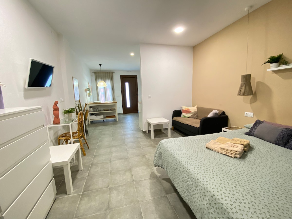 La mia casa è un piano terra ristrutturato nello storico quartiere marittimo di El Cabañal, a Valencia. Dispone di una bella camera da letto con letto matrimoniale, terrazza, wifi, aria condizionata e si trova a 5 minuti a piedi dalla spiaggia. Con un approccio moderno e minimalista, questo fantastico spazio è stato arredato con mobili selezionati e una collezione di bellissime piante per la gioia dei miei amati ospiti.
