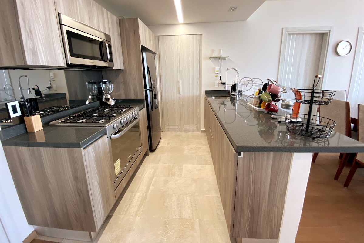 Appartamento ✨ unico per 8 persone ad Angelópolis Sonata, San Andrés Cholula, Puebla, con balcone e vista in una delle zone più esclusive della città, vasca idromassaggio, spa, piscina riscaldata, servizi di lusso, 4 camere da letto con bagno e Smart TV, completamente climatizzato, cucina attrezzata, lavatrice, sicurezza 24 ore su 24, a pochi passi da piazze, ristoranti, bar, supermercati, cinema IMAX, coworking, che si trovano nello stesso edificio, attenzione immediata e personalizzata.