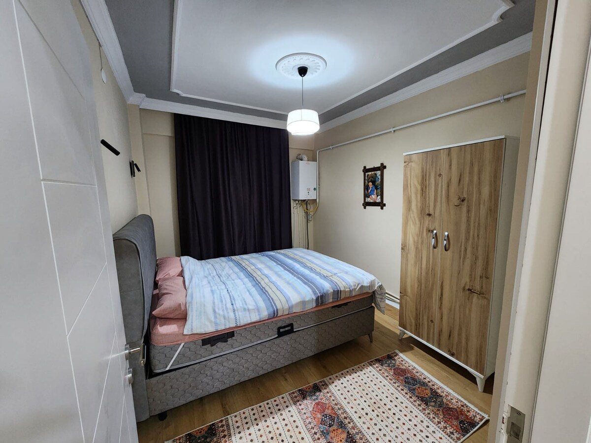 Il nostro appartamento 2+1 dispone di 1 letto matrimoniale full ortopedico e 2 letti singoli al centro. Può ospitare fino a 4 persone, 50 schermi Android box Netflix tv, console di gioco PlayStation4 a doppio braccio, parcheggio gratuito in strada. Sono presenti telecamere di sorveglianza all'esterno dell'edificio e all'ingresso dell'edificio. È a pochi passi da qualsiasi destinazione e molto vicino ai mezzi di trasporto, alla spesa, ecc. Il nostro appartamento, che dispone di tè di tasso a 50 metri di distanza, è spazioso, elegante, pulito e dispone di tutte le attrezzature necessarie.