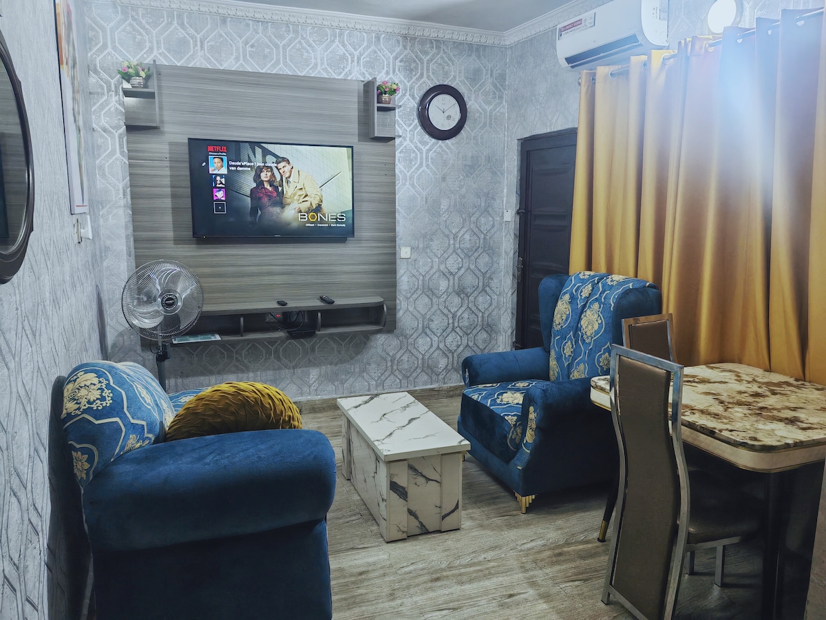 Si tratta di un appartamento con 2 camere da letto al secondo piano del Sunnyville Apartment Estate. Con questo alloggio in centro, tu e i tuoi cari sarete vicini a tutto il necessario. L'appartamento è vicino all'aeroporto, con una farmacia di fronte, ospedale, supermercato, ristorante e mercato alimentare nelle vicinanze per tutto ciò che si può mangiare. 24 ore di elettricità generata da inverter e pannelli solari. Accessibilità dei trasporti molto facile per qualsiasi parte di Lagos.