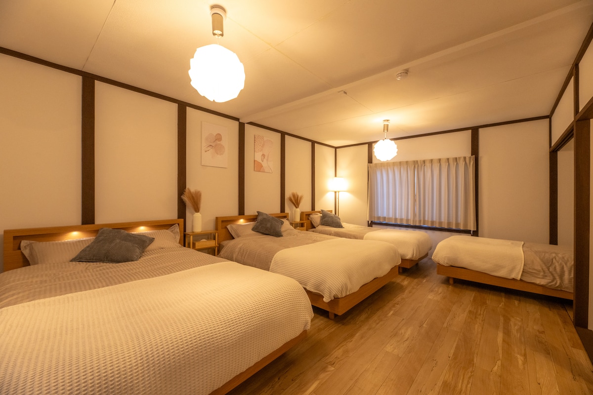 Si tratta di una nuova pensione costruita nel 2019, situata a 3 minuti a piedi dalla stazione di Gifu Hashima. Offre una combinazione di stili giapponesi e occidentali, con una stanza privata di 40 metri quadrati o una camera familiare che ha un elegante piccolo attico con tappetini tatami e un'atmosfera moderna con divani. La camera è perfetta per famiglie con bambini piccoli, coppie e gruppi. Nelle stanze c'è anche un proiettore da 100 pollici per guardare film su YouTube. Legoland e Ghibli Park sono raggiungibili in 45 minuti di auto.