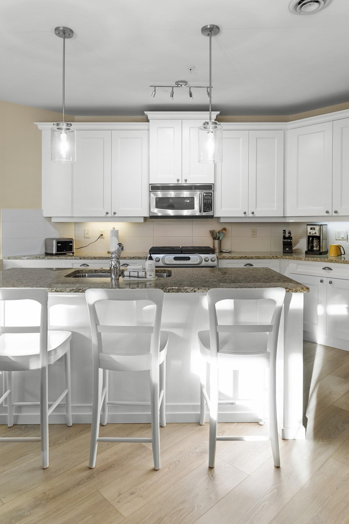 Licenza commerciale valida fino al 2026 Piscine interne ed esterne 2 camere da letto (2a camera da letto ricavata da uno studio) 1 bagno con doccia Cucina aggiornata con elettrodomestici in acciaio inox e piani di lavoro in granito 2 balconi esposti a est e ovest Wifi e Telus TV con Crave e HBO + Chromecast Spazio di lavoro adatto ai computer portatili con monitor Lavatrice e asciugatrice Macchina per caffè e caffè espresso 1 posto auto sotterraneo Posizione centrale sul lungomare di Kelowna
